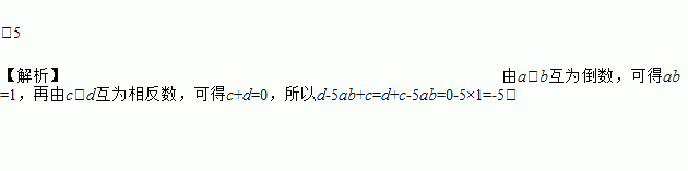 ﹣5 【解析】由a、b互为倒数,可得ab=1,再由c、d互为相反数,可得c+d=0,所以d-5ab+c=d+c-5ab=0-5×1=-5.