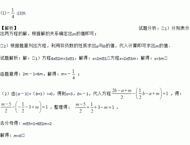(1)m为何值时,关于x的一元一次方程4x﹣2m=3x﹣1的解是x=2x﹣3m的解的2倍.