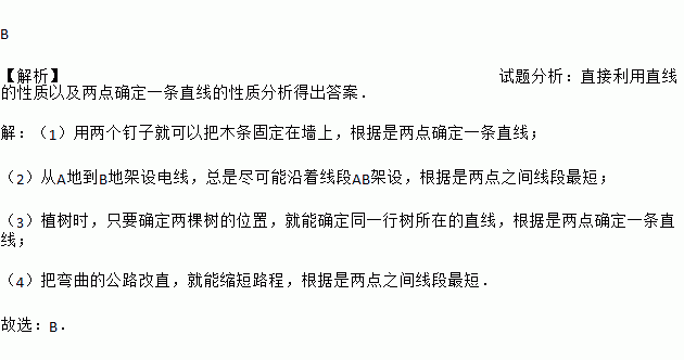 (3)植树时,只要确定两棵树的位置,就能确定同一行树所在的直线.