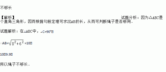 如图,从高8米的电杆AC的顶部A处,向地面的固定点B处拉一根铁丝,若B点距电杆底部的距离为6米.现在准备一根长为9.9米长的铁丝,够用吗?请你说明理由.