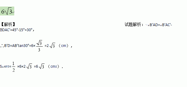 如图,等腰直角三角形ABC的直角边AB的长为6cm,将△ABC绕点A逆时针旋转15°后得到△AB′C′,则图中阴影部分面积等于_________ cm2.