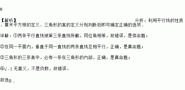 下列命题中,是真命题的是( ) ①两条直线被第三条直线所截,同位角相等;