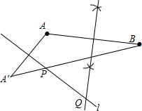 分析:作出A点关于l的对称点A′,再连接A′B,交l于点P;再做作出线段AB的垂直平分线,垂直平分线与l的交点就是Q点.