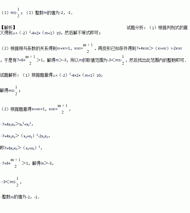 (2)如果m满足不等式7+4x1x2>x12+x22,且m为整数.求m的值.