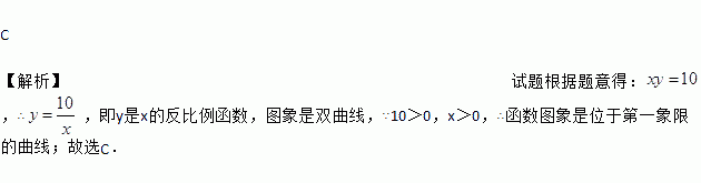 已知矩形的面积为10,长和宽分别为x和y,则y关于x的函数图象大致是( )