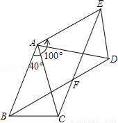 如图,△ABC中,AB=AC,∠BAC=40°,将△ABC绕点A按逆时针方向旋转100°.得到△ADE,连接BD,CE交于点F.