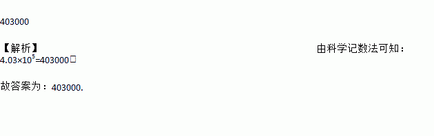 403000 【解析】由科学记数法可知:4.03×105=403000, 故答案为:403000.