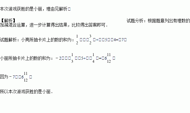 (2)比较两人所抽到的4张卡片的计算结果,结果大的为胜者.