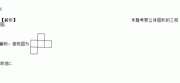 由六个大小相同的正方体组成的几何体如图所示,它的俯视图是( )