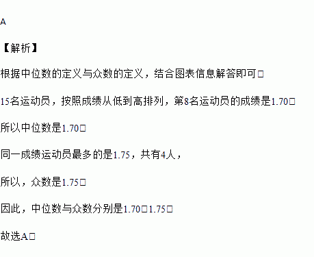 在一次中学生田径运动会上,参加男子跳高的15名运动员的成绩如下表所示: