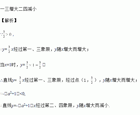 直线y=x经过第____象限,y随x增大而____;直线y=-(a2+1)x经过第____象限,y随x增大而____.