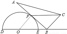将一个量角器和一个含30度角的直角三角板如图(1)放置,图(2)是由它抽象出的几何图形,其中点B在半圆O的直径DE的延长线上,AB切半圆O于点F,且BC=OD.(1)求证:DB∥CF;