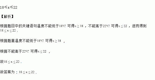 某种植物生长的适宜温度不能低于18℃.也不能高于22℃.如果该植物生长的适宜温度为x℃.则有不等式_____.