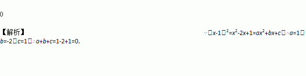已知(x-1)2=ax2+bx+c,则a+b+c的值为____________.