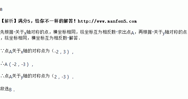若点A关于x轴的对称点为(-2,3),则点A关于y轴的对称点为( )