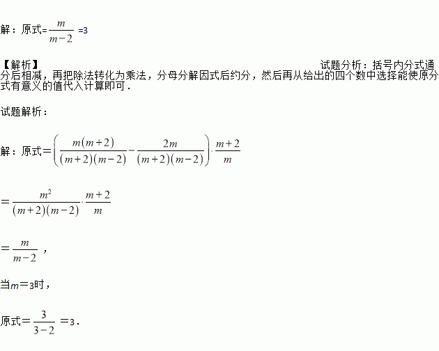 先化简,再求值:(﹣)÷,请在2,﹣2,0,3当中选一个合适的数代入求值.
