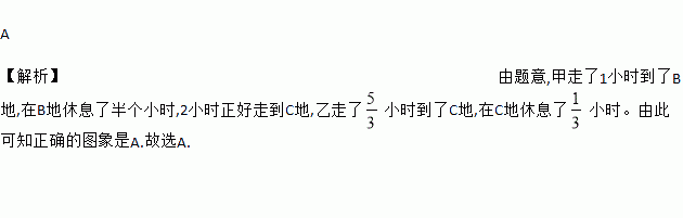 一段笔直的公路AC长20千米,途中有一处休息点B,AB长15千米,甲、乙两名长跑爱好者同时从点A出发,甲以15千米/时的速度匀速跑至点B,原地休息半小时后,再以10千米/时的速度匀速跑至终点C;乙以12千米/时的速度匀速跑至终点C,下列选项中,能正确反映甲、乙两人出发后2小时内运动路程y(千米)与时间x(小时)函数关系的图象是( )