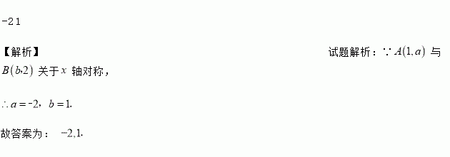 若A(1,a)与B(b,2)关于x轴对称,则a=_____,b=_____.