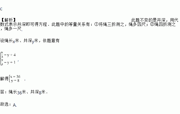 以绳测井,若将绳三折之,绳多四尺;若将绳四折测之,绳多一尺,井深和绳长分别是( )