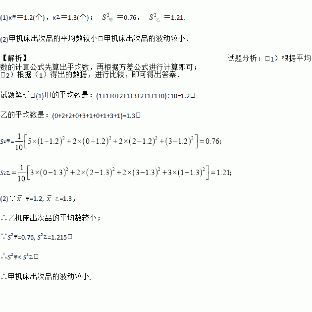 (2)从计算的结果来看,在10天中,哪台机床出次品的平均数较小?哪台机床出次品的波动较小?