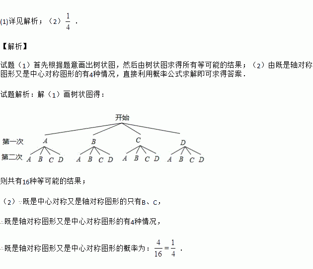 (1)用树状图(或列表法)表示两次摸牌所有可能出现的结果(纸牌可用A、B、C、D表示);