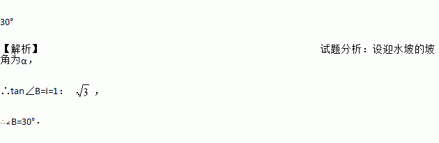 如图是一个拦水大坝的横断面图,AD∥BC,如果背水坡AB的坡度为1: ,则坡角∠B= .