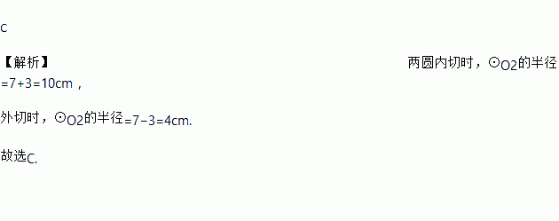 已知⊙O1与⊙O2相切,若⊙O1的半径为3cm,O1O2=7cm,,则⊙O2的半径为( )