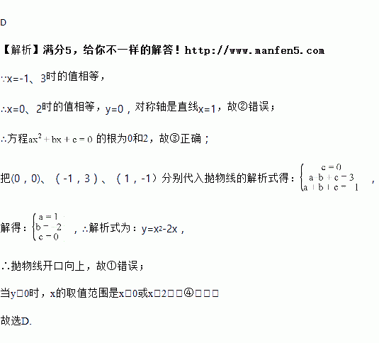 已知抛物线y=ax2+bx+c上部分点的横坐标x与纵坐标y的对应值如表: