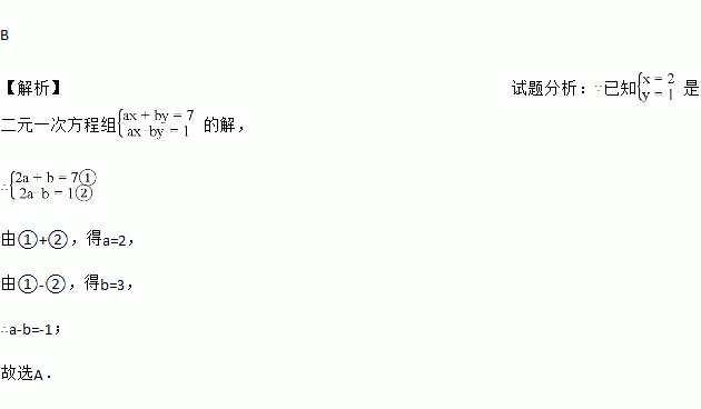已知是二元一次方程组的解,则a-b的值为( )