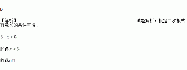 A. x≥3 B. x≤3 C. x>3 D. x<3