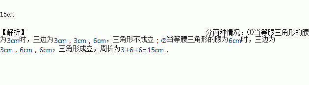 等腰三角形的一边长是6cm,另一边长是3cm,则周长为______________;