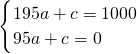 图象经过(195,1000),(95,0),则: