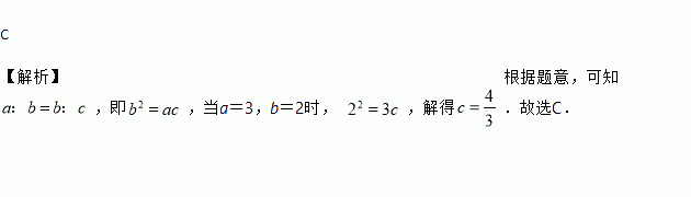 如果a=3,b=2,且b是a和c的比例中项,那么c=( )