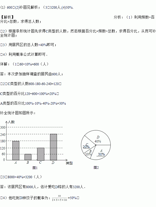 (3)若居民区有8000人,请估计爱吃D种饺子的人数;