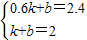 ∵已知x=0.6时,y=2.4;x=1时,y=2