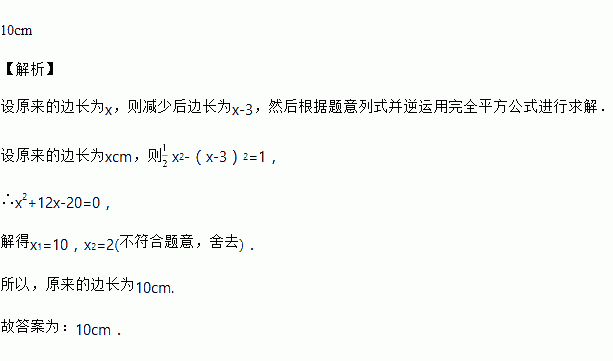 一个正方形的边长减少3 cm后,它的面积比原面积的一半还少1 cm2,则原来的边长为____.