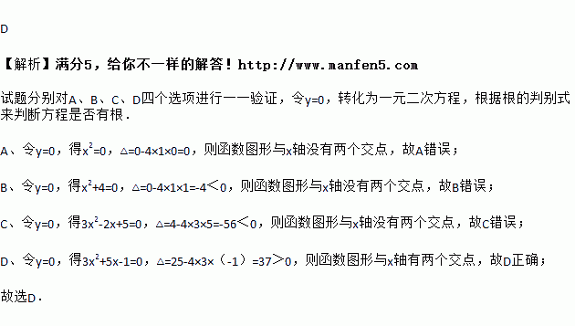 下列二次函数中有一个函数的图像与x轴有两个不同的交点,这个函数是( )