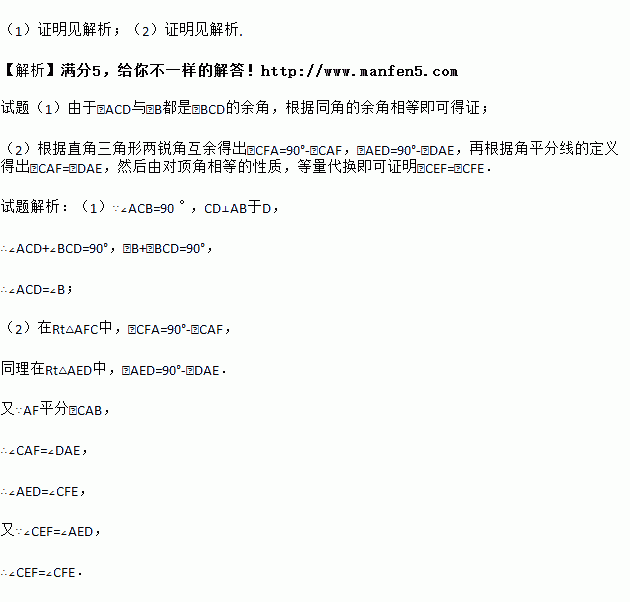 (2)若AF平分∠CAB分别交CD、BC于E、F,求证:∠CEF=∠CFE.