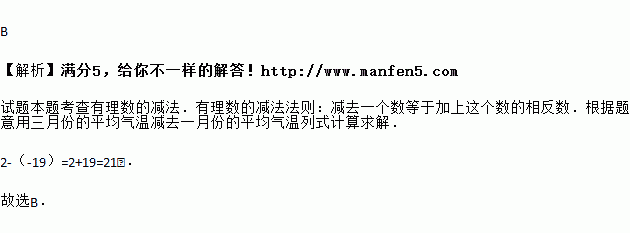 某地区一月份的平均气温为﹣19℃,三月份的平均气温为2℃,则三月份的平均气温比一月份的平均气温高( )