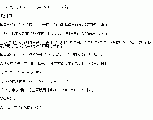 (1)活动中心与小宇家相距 千米,小宇在活动中心活动时间为 小时,他从活动中心返家时,步行用了 小时;