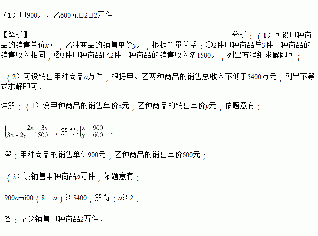 (2)若甲、乙两种商品的销售总收入不低于5400万元,则至少销售甲种商品多少万件?