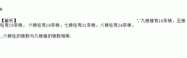 A. 五棱柱 B. 六棱柱 C. 七棱柱 D. 八棱柱