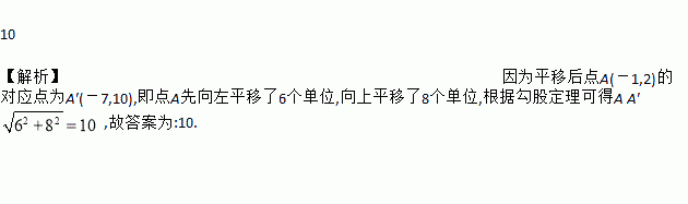 将四边形ABCD平移后得到四边形A′B′C′D′,已知点A(-1,2)的对应点为A′(-7,10).若将四边形A′B′C′D′看成由四边形ABCD沿A到A′的方向一次平移得到的,则平移的距离为____.