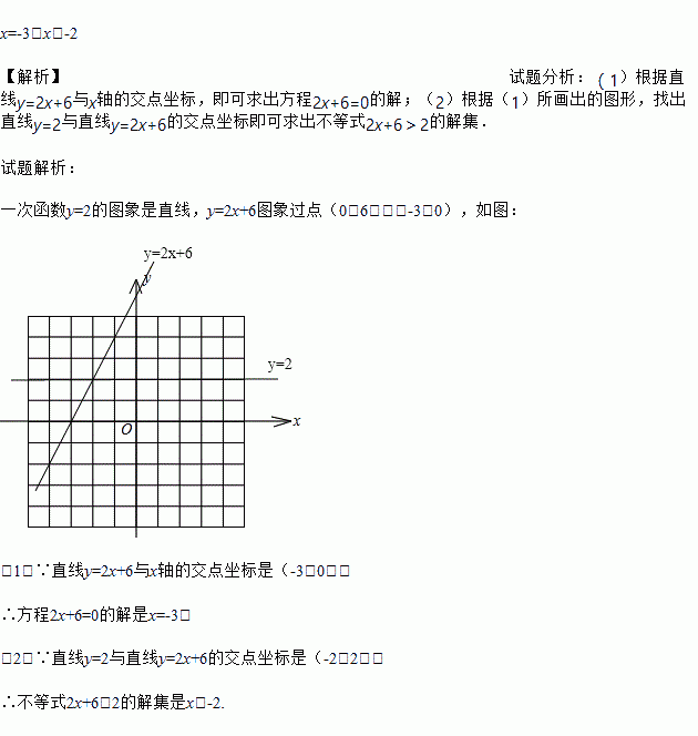 在如图的坐标系中,画出函数y=2与y=2x+6的图象,并结合图象求: