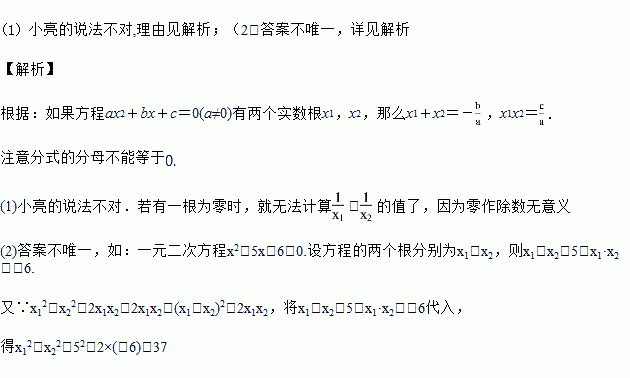 学了一元二次方程的根与系数的关系后,小亮兴奋地说:“若设一元二次方程的两个根为x1,x2,就能快速求出
