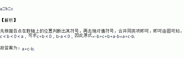 有理数a,b,c在数轴上的对应点如图所示,化简:|b|-|c+b|+|b-a|=________.