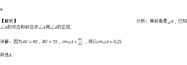 为了方便行人推车过某天桥,市政府在10m高的天桥一侧修建了40m长的斜道(如图所示),我们可以借助科学计算器求这条斜道倾斜角的度数,具体按键顺序是( )