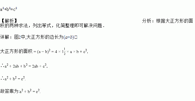 中国数学史上有许多著名的数学家,很多理论都是由他们的名字命名的.如图1就是著名的“赵爽弦图”,它是由公元3世纪三国时期的赵爽为证明某个定理而创设的一副“弦图”,图2由“弦图”变化得到,请用含a,b,c的等式表示定理的内容_____.