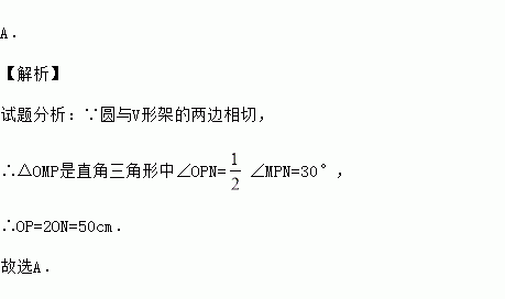 一个钢管放在V形架内,如图是其截面图,O为钢管的圆心.如果钢管的半径为25cm,∠MPN=60°,则OP=( )