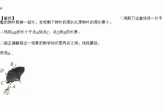 某同学用剪刀沿直线将一片平整的银杏叶减掉一部分(如图),发现剩下的银杏叶的周长比原银杏叶的周长要小,能正确解释这一现象的数学知识是( )